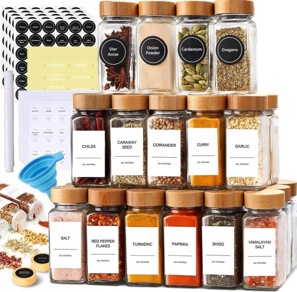 BOTC 24 db-os fűszertartó üveg szett bambusz fedővel, 120 ml-es (Spice jar 24 pcs)ALLEGRO