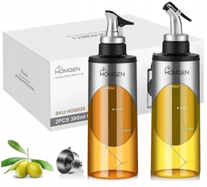 Homgen 380 ml-es olaj-, ecetpalack adagolóval és mérőpohárral, 2 db-os készlet (380)