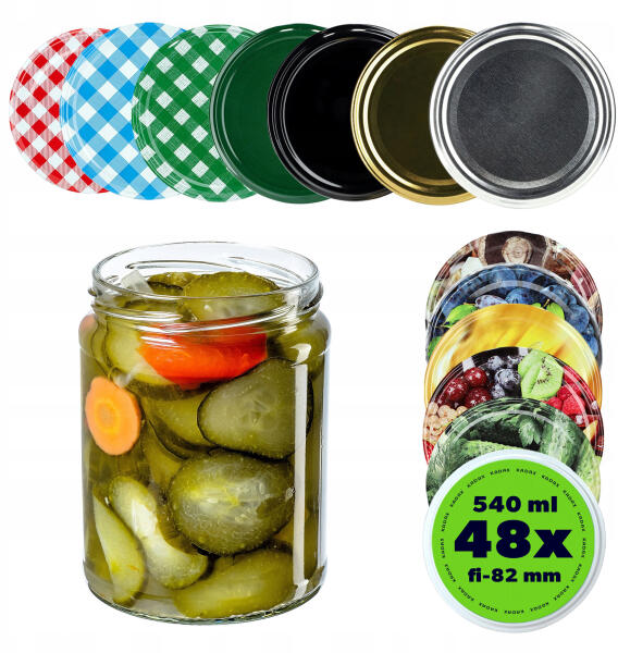 Kadax Befőttesüveg 540 ml 500 ml Befőttesüveg Fedél Kupak 48DB FI82 (K7612)ALLEGRO