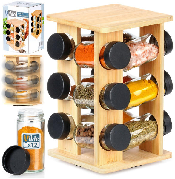 Vilde Fűszertartó állvány forgatható tartályok fűszertartó konyhai polc bambusz (5904316493417)ALLEGRO